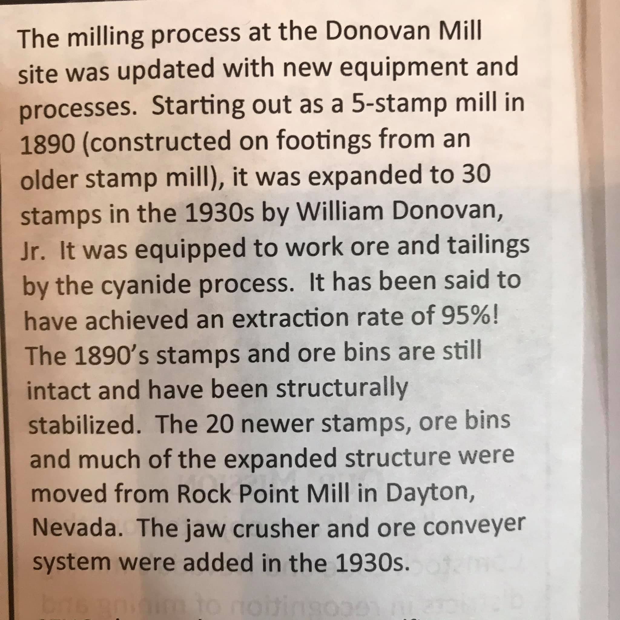 Cynide vats. The crushed ore containing Gold , Silver, Copper and other sulfides is absorbed into a solution now called “pregnant solution”. The liquid is then pumped into the recovery room and powdered Zinc is added which is a more reactive metal and the gold and other minerals precipitate out. Cynide is an unnatural compound of Carbon and Nitrogen. It is safe as long as the liquid is kept basic PH. If it goes acidic it releases Cynide gas which is deadly. So it is tested all the time and lime added if needed. Cynided tailings exposed to the sun is neutralized breaking the bond. (For comparison, cigarette smoke contains as much as 3000 ppm Cynide far exceeding the concentration used in mining)