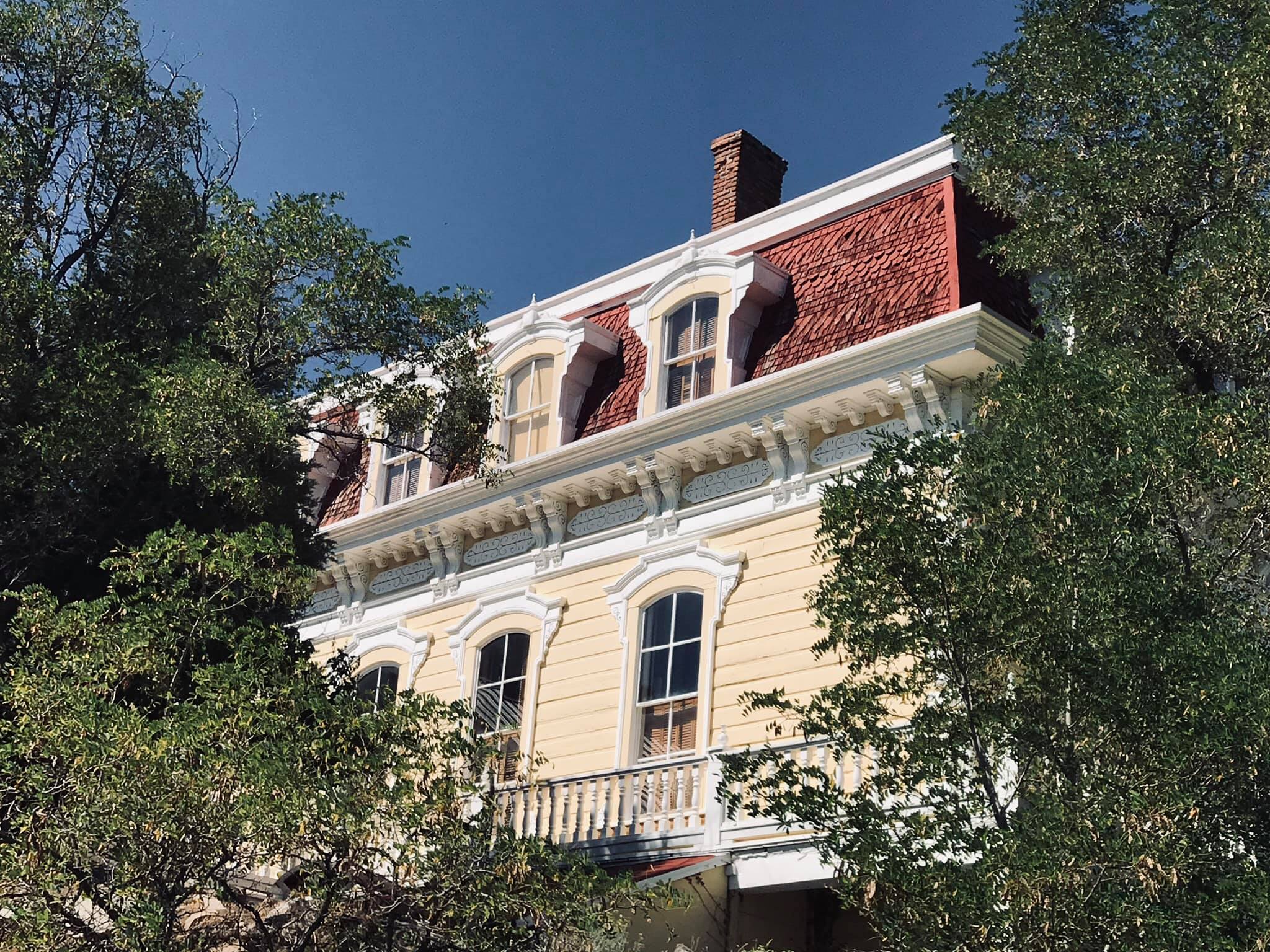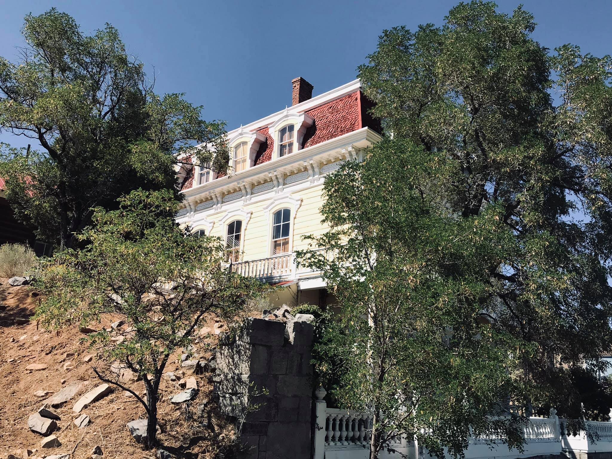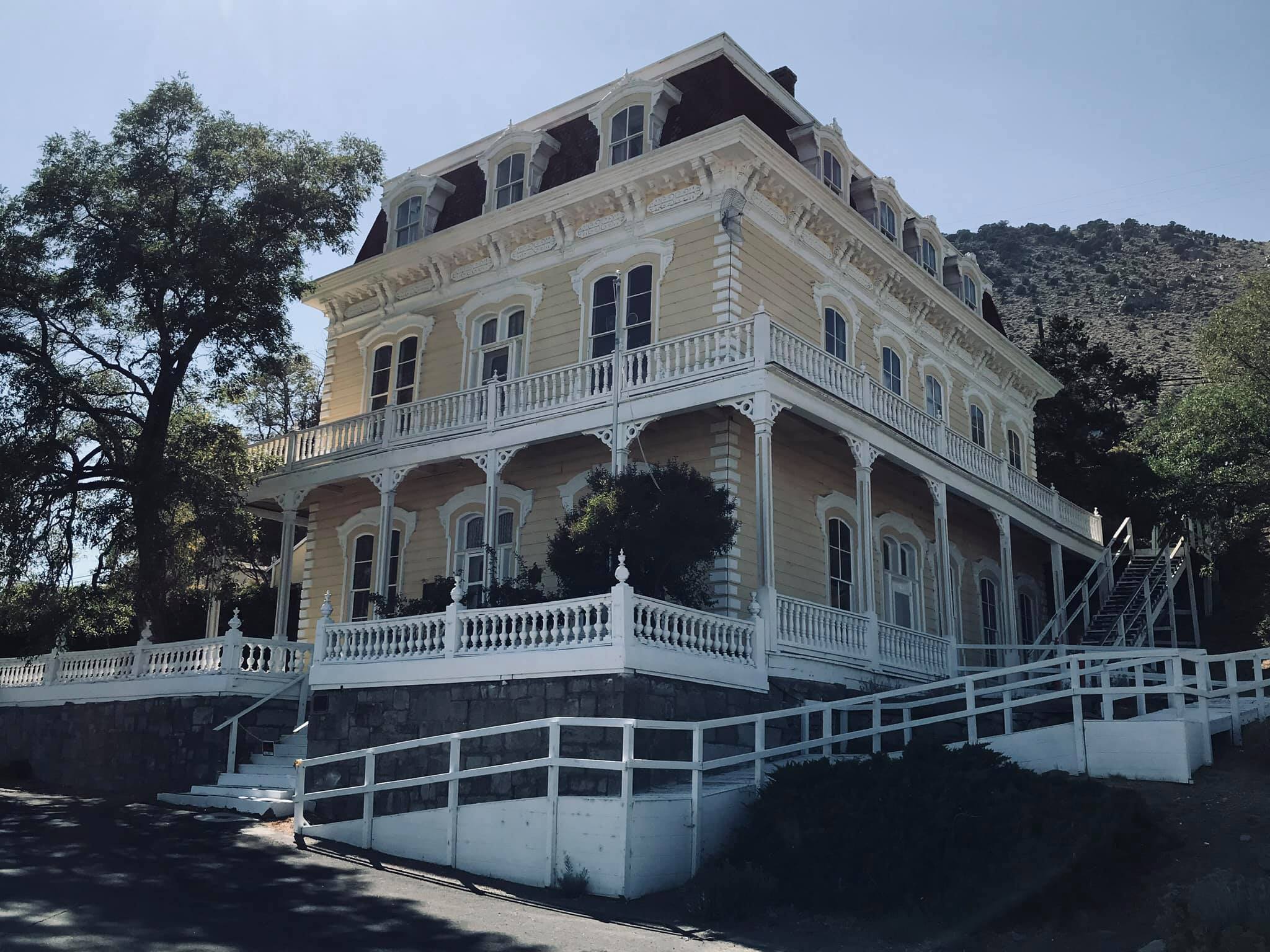 This magnificent 21-room Second Empire style building was constructed by the Savage Mining Company in 1861. The ornate building is an excellent example of the architectural elegance associated with the offices and residences of the mining elite. The top two floors of the building served as the mine superintendent’s residence, while the ground floor was the mine office. The building has been restored with attention to its distinctive architectural features, such as the mansard roof, dormer windows and delicate gingerbread trim. The interior boasts 14-foot-high ceilings, a seven-foot copper bathtub, a Lincrista frieze in the main hallway and early Victorian furnishings. Ulysses S. Grant is said to have stayed in the house in 1879 and addressed crowds in a speech from the porch. During this time, a Mrs. Monoghan, whose husband had been killed in one of the mines, The term “mansion” has been liberally applied in the Comstock to include any large and vaguely residential building. This has been done for promotional purposes and is far from being an accurate characterization. Even the most elaborate dwellings in Virginia City would be considered no more than ordinary houses in any urban setting. In the case of the Savage, Gould & Curry and Chollar properties, all referred to as mansions, the term is a complete misnomer, having been applied to buildings that served primarily as offices for major mining companies.