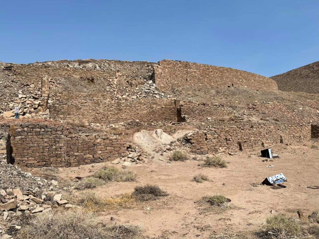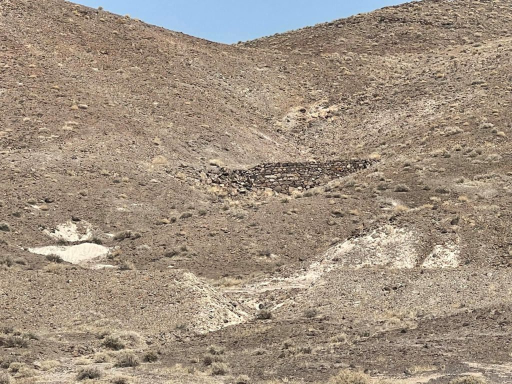 The Carson and Colorado Railroad spur tracks were at the top of the long curved wall to allow dumping the ore from the mine at Candelaria into the mill. The Narrow Gage RR ran 300 miles from Moundhouse Nevada (meeting the Virginia & Truckee RR there)to Keeler Califormia