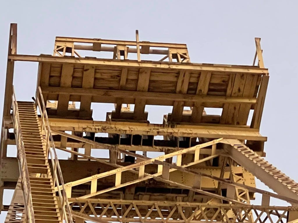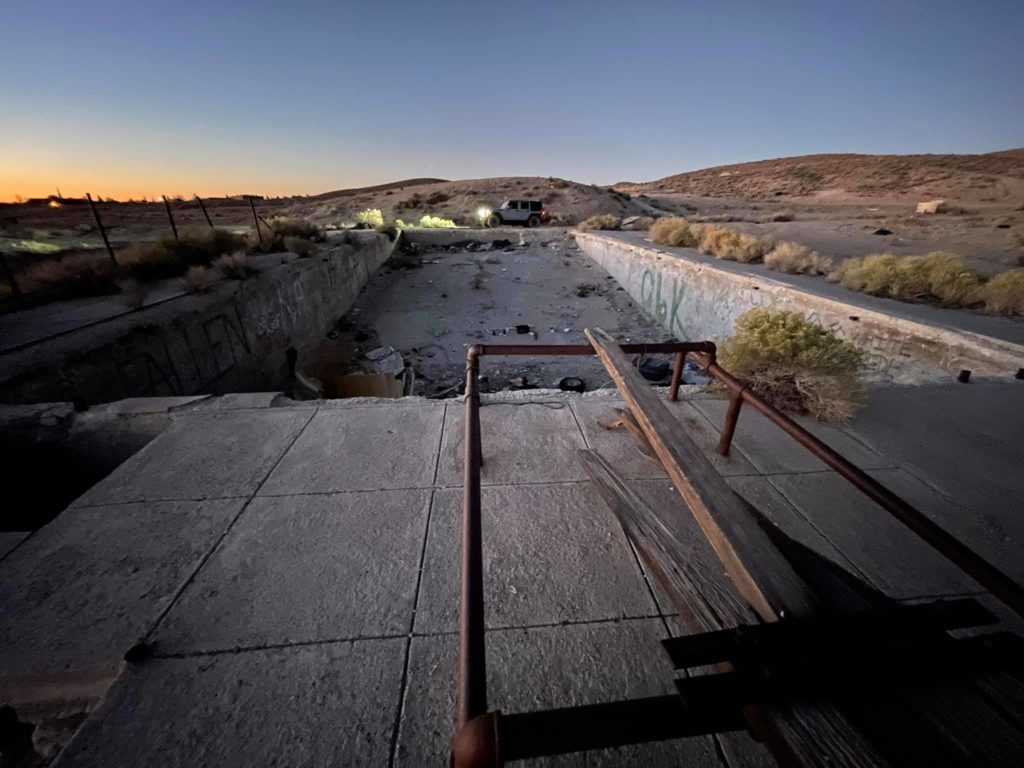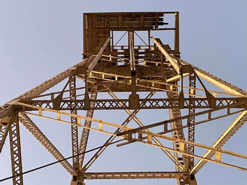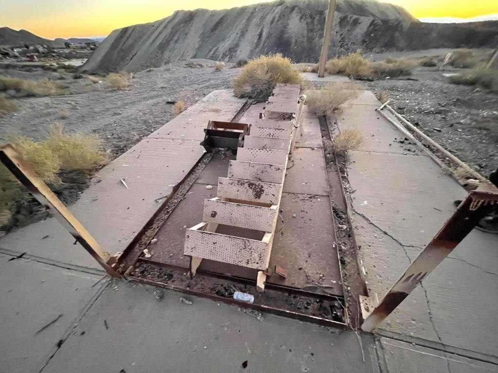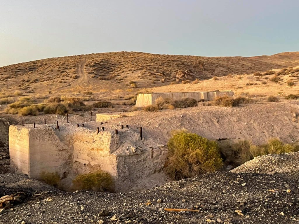 Tonopah Extention Mining Company. This is one of the deepest of the many silver mines in Tonopah. The headframe is the tallest remaining in Tonopah. The hot water from the 2375’ deep shaft fed the community pool provided by the company according to Nevada Expeditions Austen Metz until the mine closed in the 1950’s. The pool has a 10’ deep end as there were large diving boards.