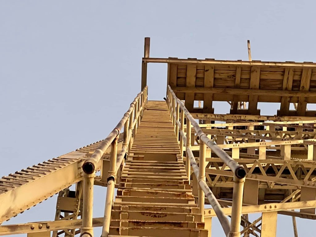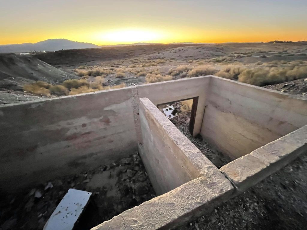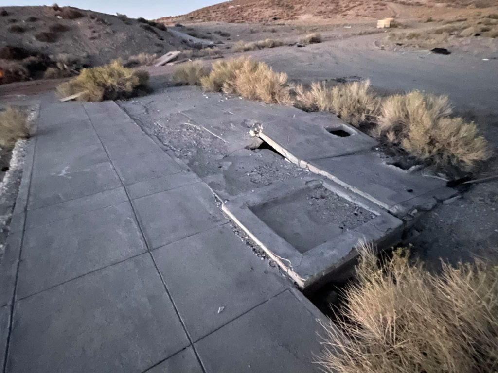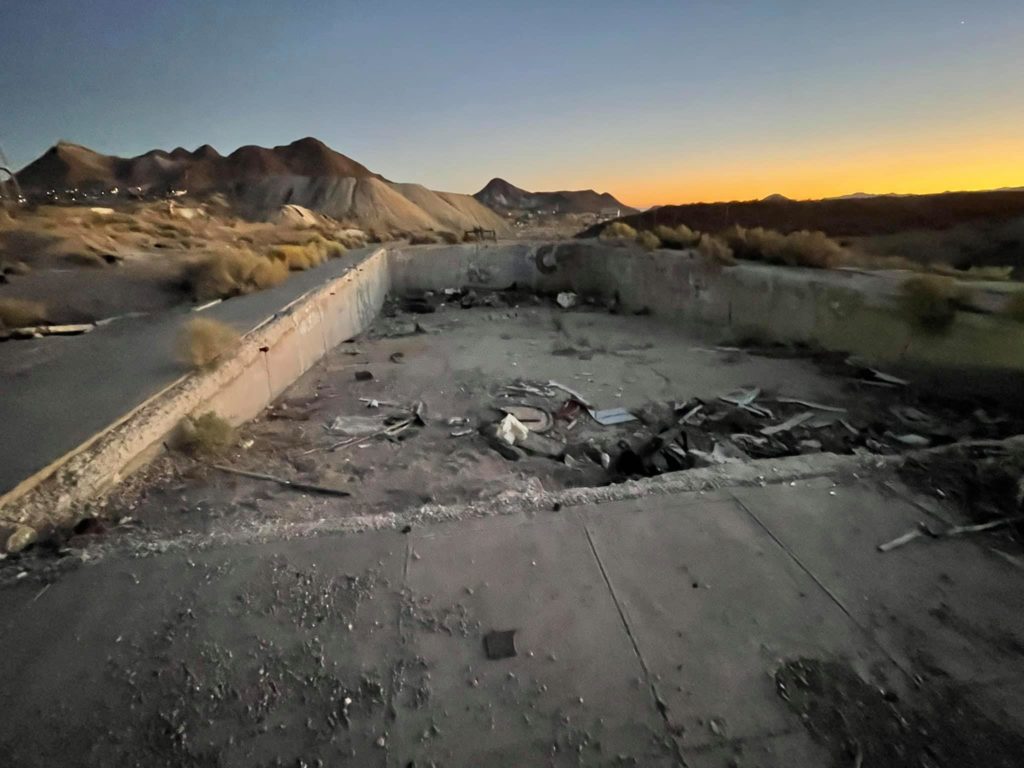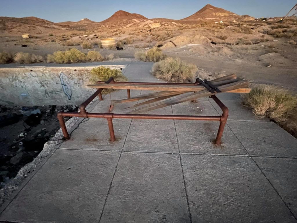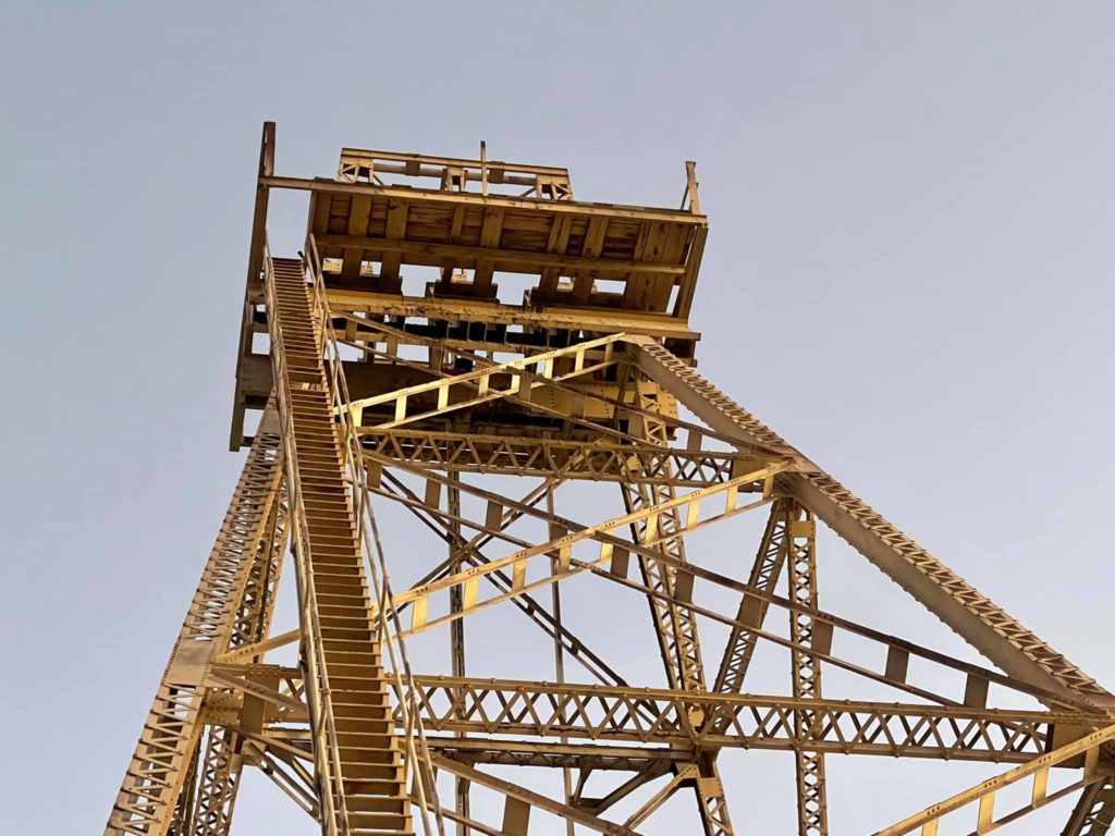 Tonopah Extention Mining Company. This is one of the deepest of the many silver mines in Tonopah. The headframe is the tallest remaining in Tonopah. The hot water from the 2375’ deep shaft fed the community pool provided by the company according to Nevada Expeditions Austen Metz until the mine closed in the 1950’s. The pool has a 10’ deep end as there were large diving boards.